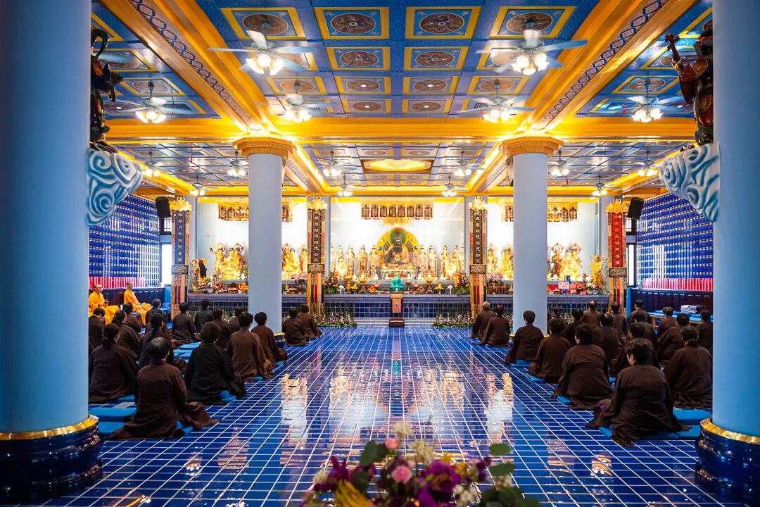 药师密坛每天从早上6点到晚上12点不间断轮班念诵药师佛圣号,共计882小时