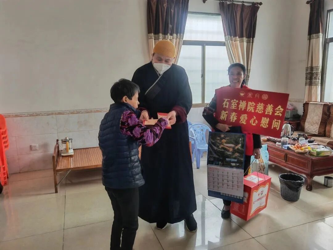 2023年1月13日,石室禅院慈善会前往海沧大街慰问困难家庭。惟一法师带着慈善会工作人员和义工冒雨一一入户,为他们带去了厦门市红十字会的爱心礼包、慈善会准备的食用油、福寿米、新春礼包、2023新挂历和慰问金。
