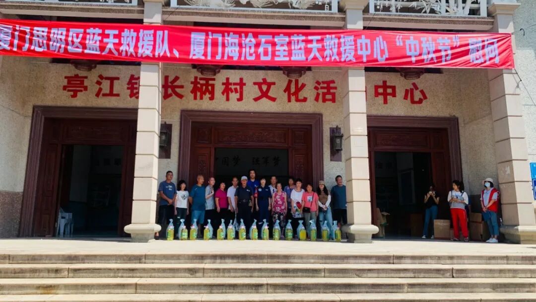 中秋将至,9月21日,厦门蓝天救援队队长、厦门海沧石室蓝天救援中心秘书长水草带领厦门蓝天救援队、厦门海沧石室蓝天救援中心携带由厦门海沧石室禅院提供的中秋节慰问品(馅饼、大米、食用油、冬衣等)前往福州马尾区亭江镇长柄村,为村里老人送上中秋慰问礼品和节日祝福。