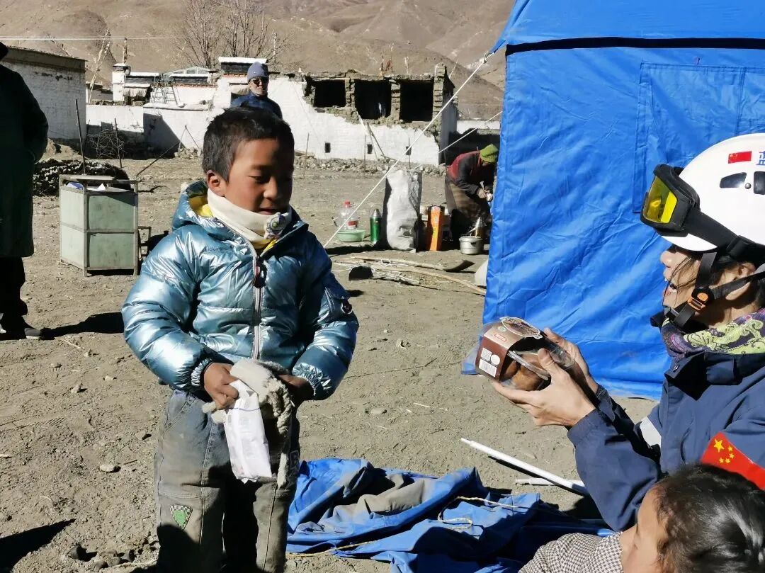 队员们一整天在低温缺氧、暴风尘里的环境中忙碌着,搭建起一个又一个帐篷,队员们都累坏了,可是看到灾区的孩子们蹦蹦跳跳地围在周围,高兴他们可以住进“新家”了,就觉得辛苦也值得。